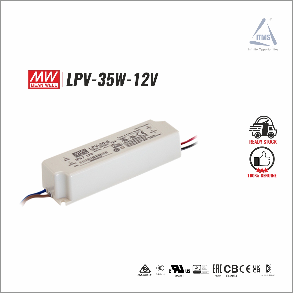 2. Ripple & noise are measured at 20MHz of bandwidth by using a 12″ twisted pair-wire terminated with a 0.1uf & 47uf parallel capacitor. 3. Tolerance : includes set up tolerance, line regulation and load regulation. 4. Derating may be needed under low input voltage. Please check the static characteristics for more details. 5. The power supply is considered as a component that will be operated in combination with final equipment. Since EMC performance will be affected by the complete installation, the final equipment manufacturers must re-qualify EMC Directive on the complete installation again. 6. Length of set up time is measured at first cold start. Turning ON/OFF the power supply may lead to increase of the set up time. 7. LPV-35-5 can provide 6A of output current continuously. Based on the requirement of UL1310 class 2, the output current is only certified up to 5A for the test report of LPV-35-5. 8. Suitable for indoor use or outdoor use without direct sunlight exposure. Please avoid immerse in the water over 30 minute. 9. The ambient temperature derating of 3.5℃/1000m with fanless models and of 5℃/1000m with fan models for operating altitude higher than 2000m(6500ft). 10. Products sourced from the Americas regions may not have the TUV/BIS/CCC logo. Please contact your MEAN WELL sales for more information. 11. For any application note and IP water proof function installation caution, please refer our user manual before using. https://www.meanwell.com/Upload/PDF/LED_EN.pdf 12. This product is not intended for LED lighting luminaire applications in the EU.(In the EU the LPF/NPF/XLG series are recommended.) 13. Products sourced from the China regions may have the BIS logo, please contact your MEAN WELL sales for more information. ※ Product Liability Disclaimer:For detailed information, please refer to https://www.meanwell.com/serviceDisclaimer.aspx |